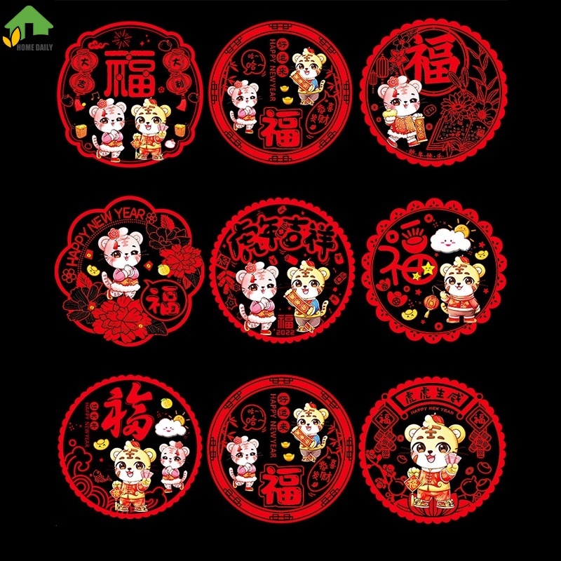 Cny 2022 New Year Glass Window Stickers Tiger Year Spring Festival Chinese Decorations Fuchi Door Shopee Singapore